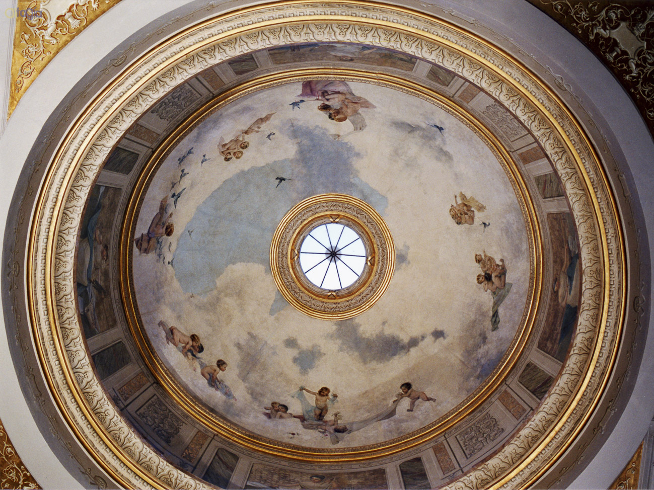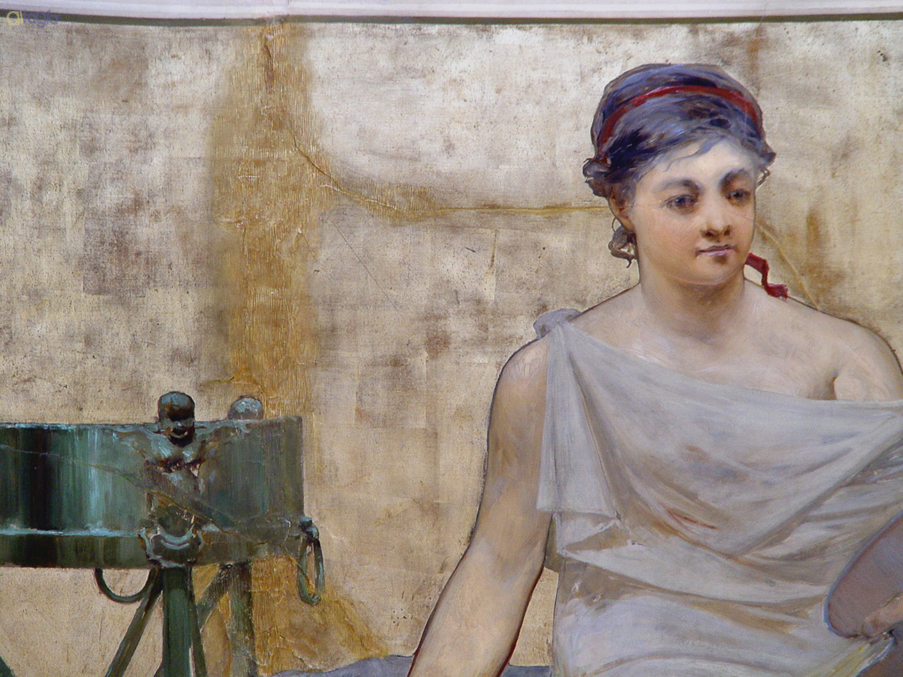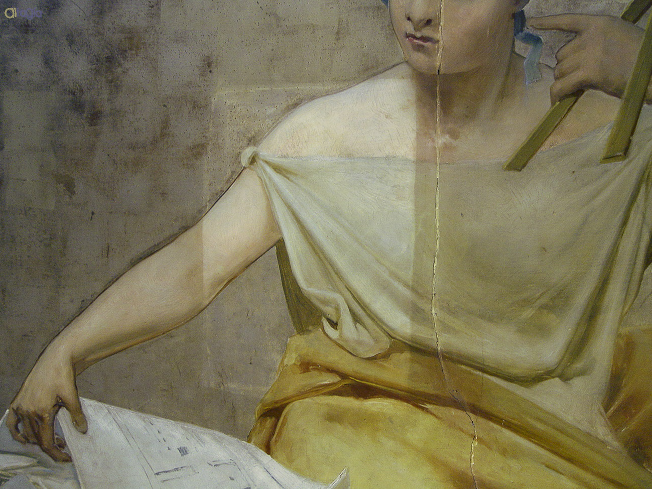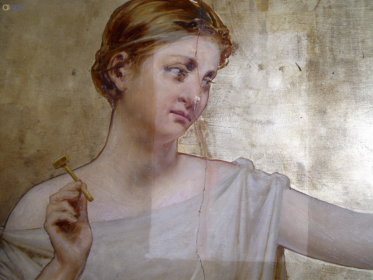 Imágenes de las Alagorias de las Artes en el tambor de la cúpula durante la restauración: