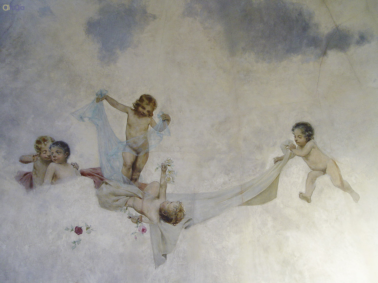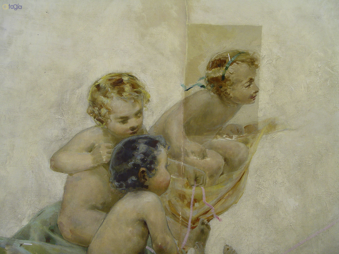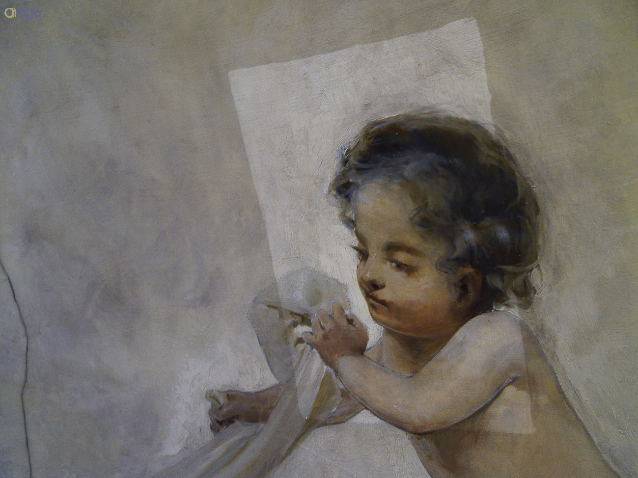 Imágenes de los grupos de putti de la cúpula durante el proceso de restauración: