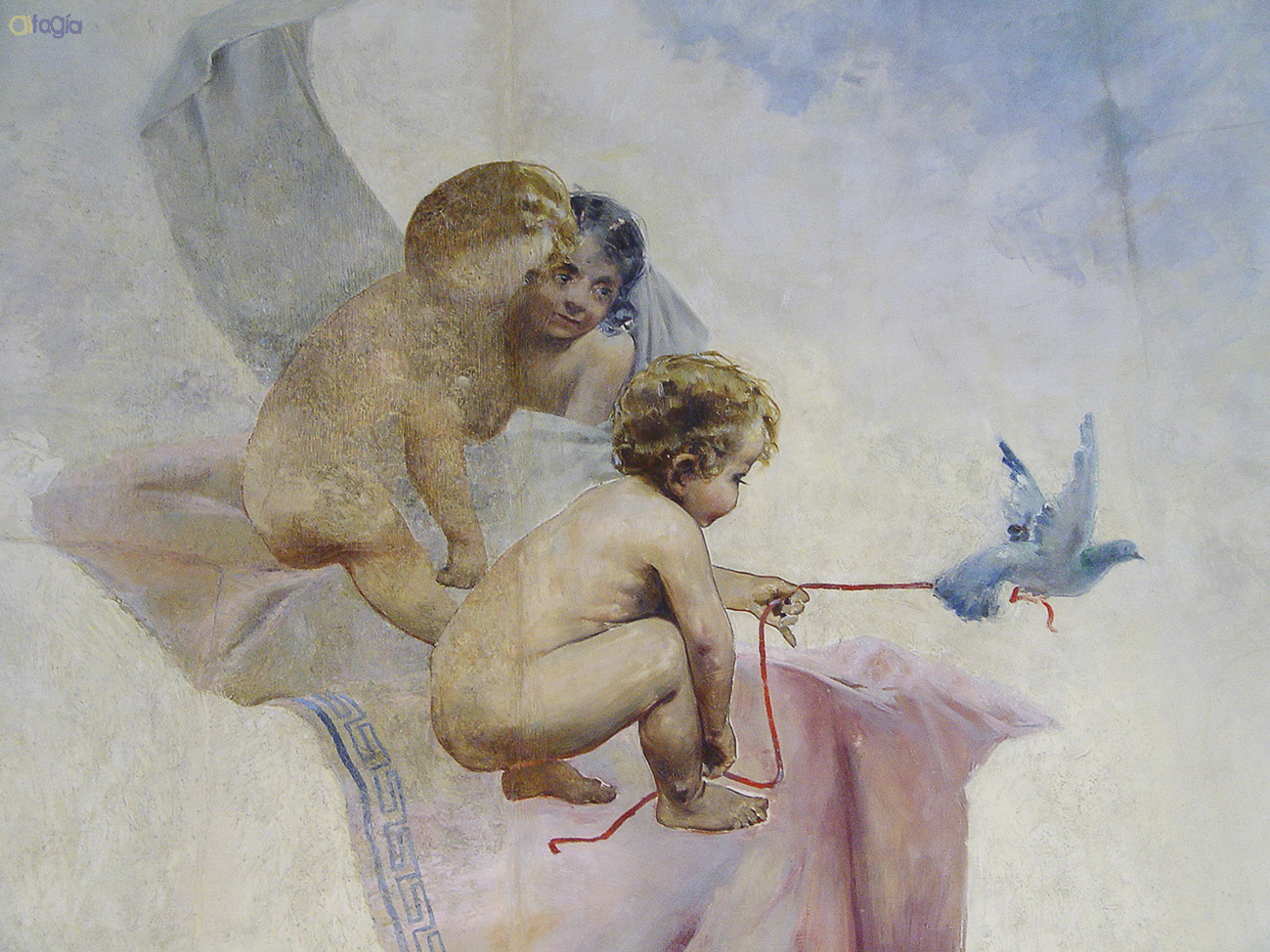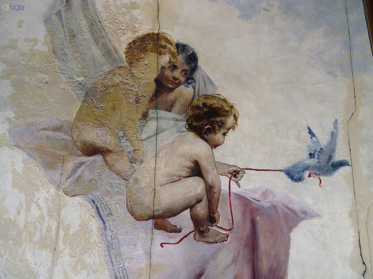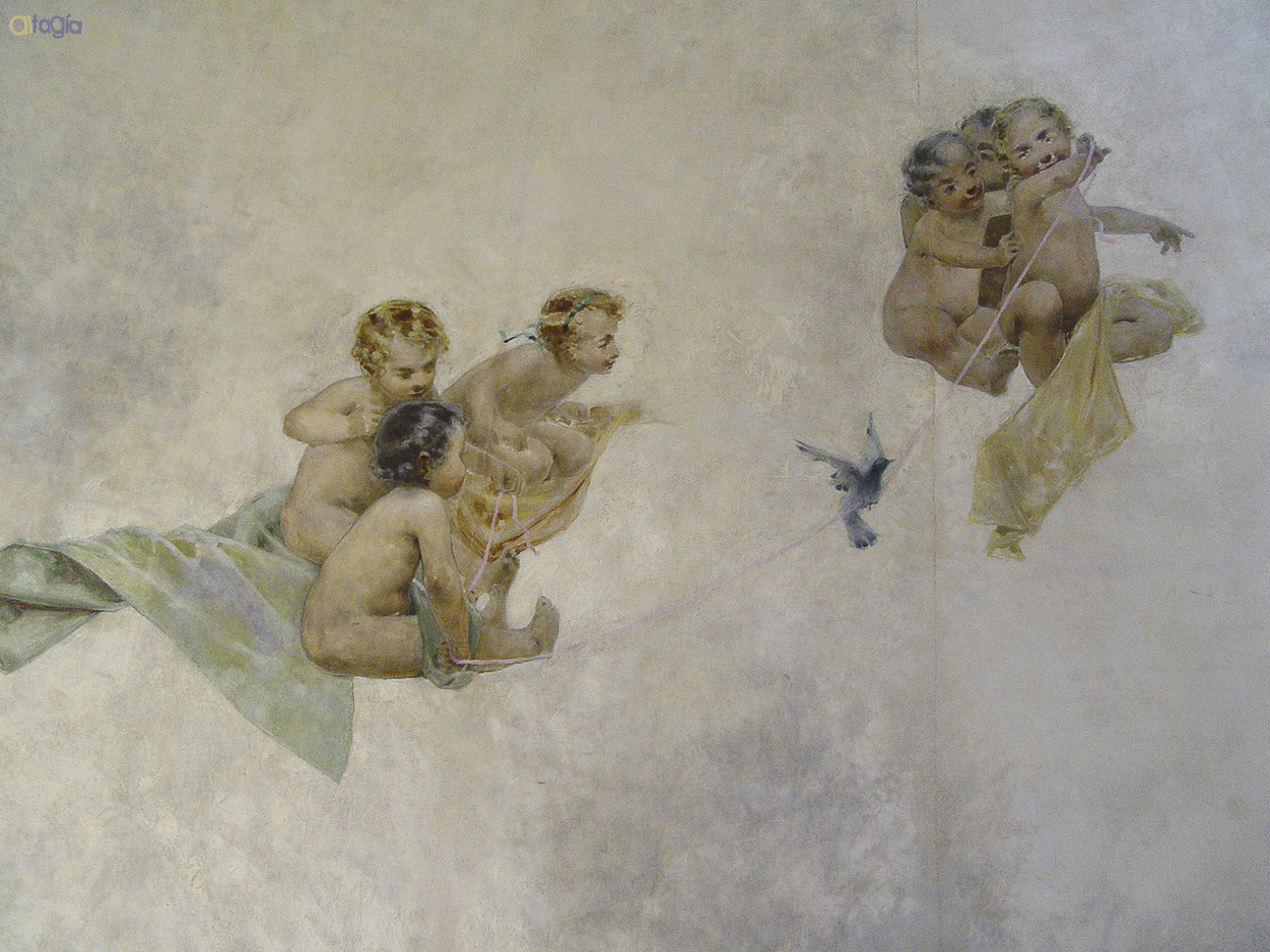 Imágenes de los grupos de putti de la cúpula durante el proceso de restauración: