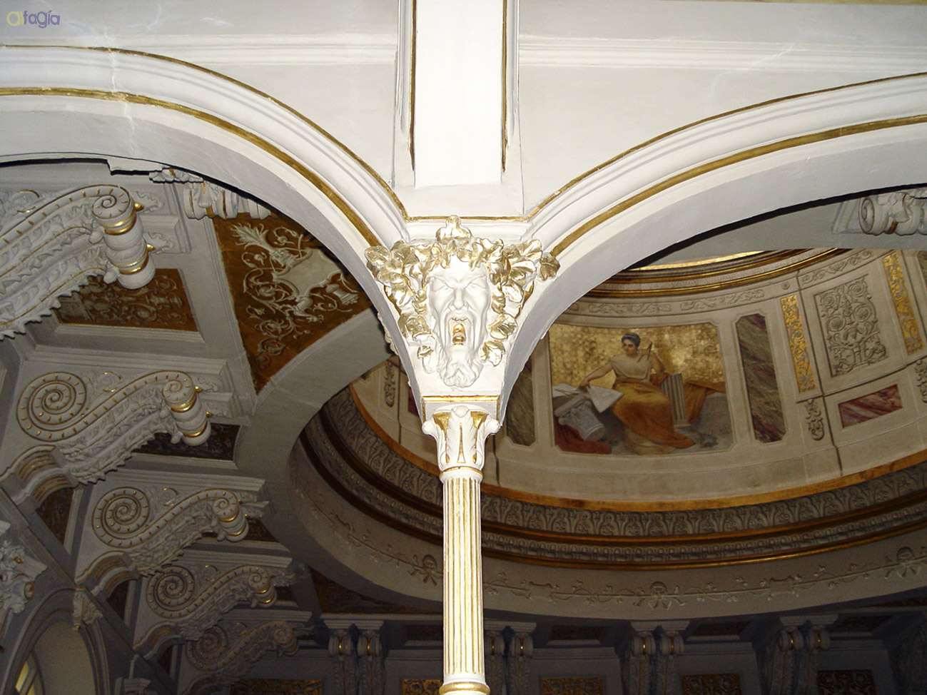 La escalera del Palacio Provincial habla de la mirada con la que los modernos se enfrentaron ante la monumentalidad del espacio historicista. La escalera posee una grandilocuencia muy del gusto del eclecticismo, pero el lenguaje pictórico de Ángel Andrade, se vuelve íntimo, reflexivo, y parafrasea espacios fingidos como contrapunto a la fábula ornamental que convive con la pintura.
