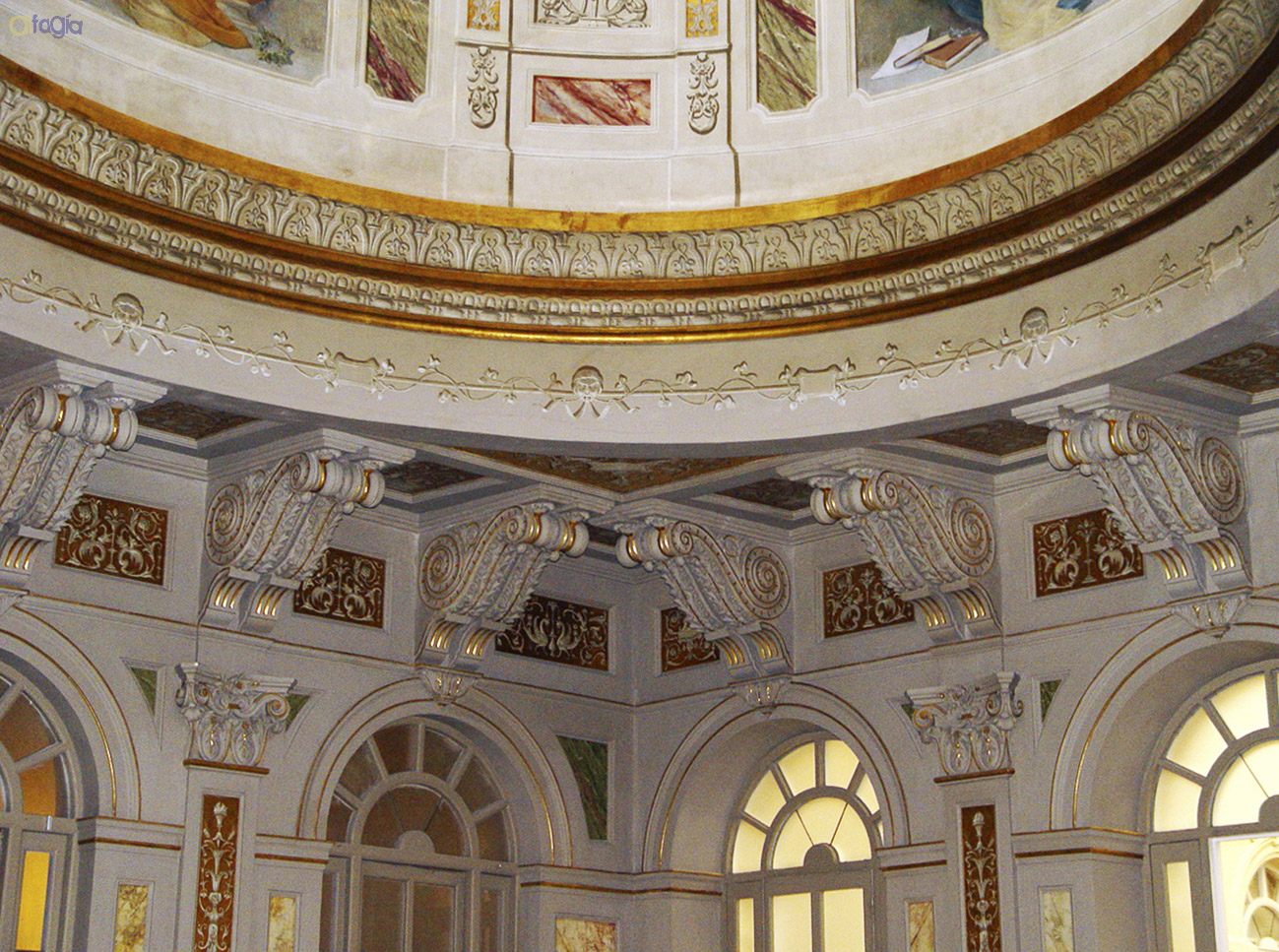 El estado de conservación de la ornamentación dependía de la situación de los paramentos. La acción antrópica era la principal causa de deterioro en la parte inferior de la escalera, mientras que en el entablamento la problemática se limitaba a la suciedad y oxidación de barnices. El tambor y la bóveda presentan el mayor nivel de deterioro. El tipo de construcción y la mayor permeabilidad a los agentes atmosféricos del exterior influyen en una peor conservación de las pinturas. Pudimos comprobar la realización de una serie de reparaciones estructurales y finalmente, sobre la capa de color, repintes que trataban de solventar las grietas y fracturas que alteraban las pinturas.