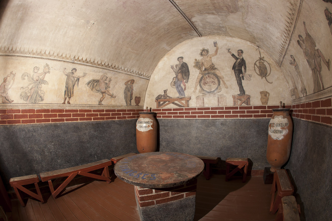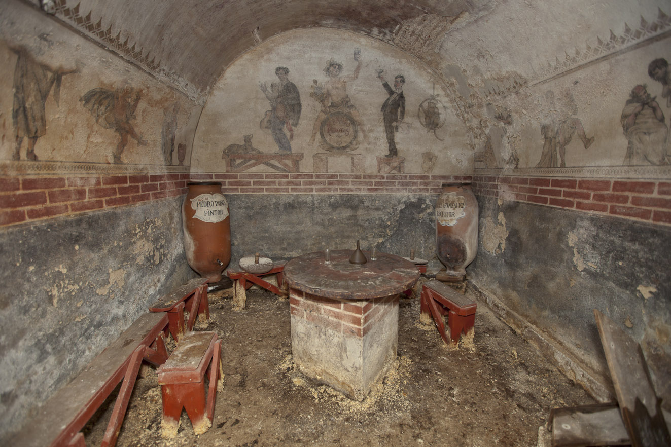El grupo de tinajas cerámicas conservaban sus tapaderas de madera y fueron decoradas en distintos momentos por distintos autores y empleando las más diversas técnicas de ejecución, con los nombres de ilustres habitantes de la villa, dando nombre a la amplia galería subterránea.