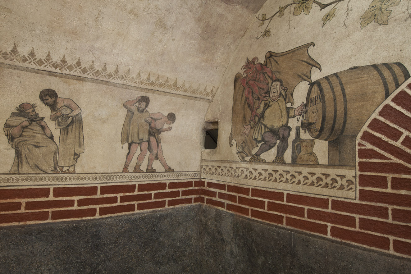 La técnica fresquista no debía ser usual para Pedro Donis dado que se trata de una técnica conocida solo por pintores extranjeros, principalmente italianos puesto que el tipo de muralista en la península trabaja esencialmente mediante temple mural . Pero el fresco era la única técnica con posibilidades reales de asegurar la durabilidad de unas pinturas que permanecen en el ambiente húmedo de la bodega subterránea.