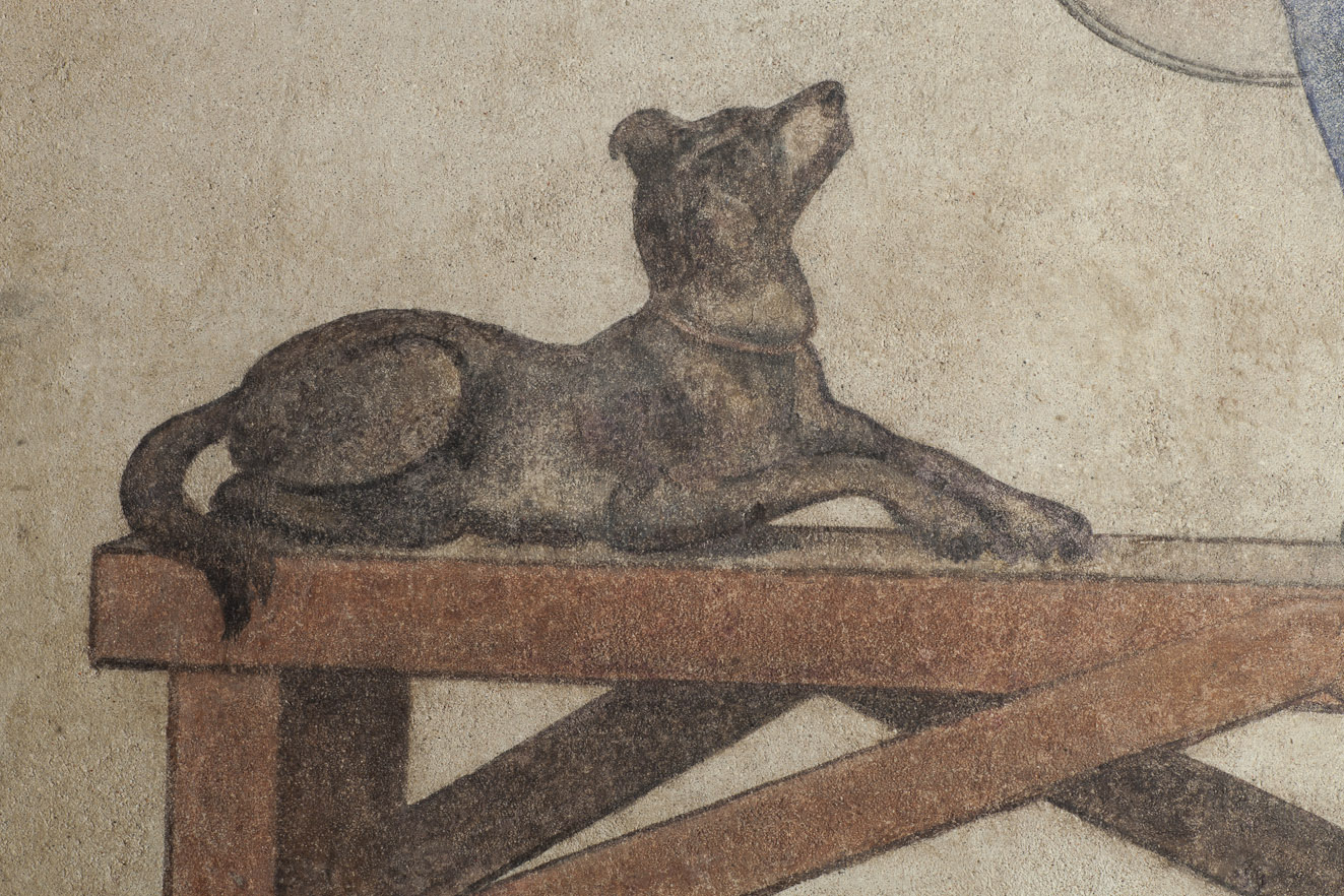 En la gran sala abovedada realizamos los tratamientos de conservación de las cerámicas, y su memorial de cartelas policromadas.