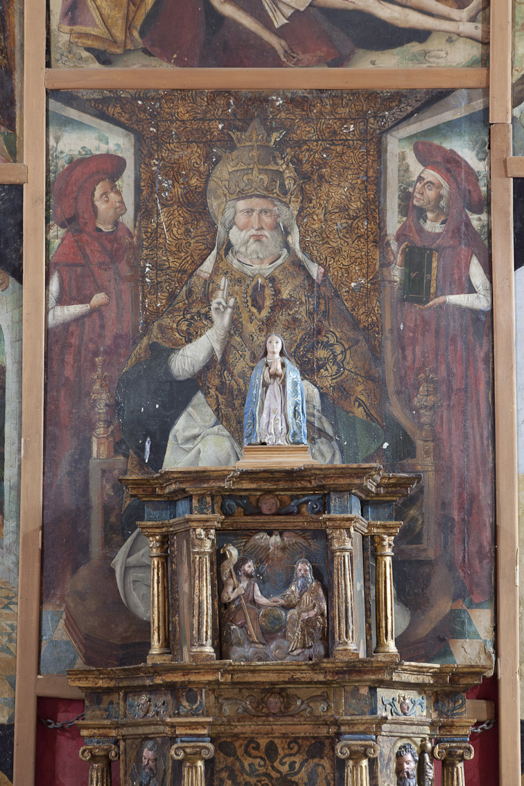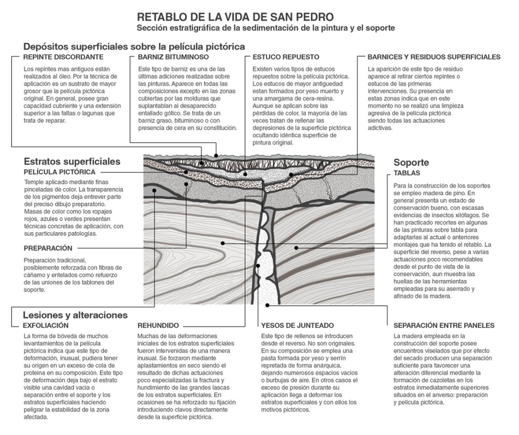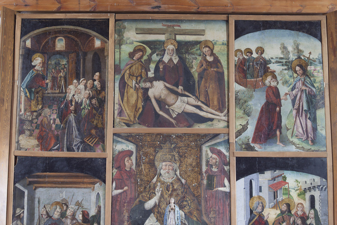 Además del ciclo sobre la vida de san Pedro, conserva una composición del Llanto sobre Cristo muerto y los cuatro motivos de la predela representando un grupo de santas mujeres: Catalina de Alejandría, Bárbara de Nicomedia, Santa Ana junto a María y Niño Jesús, y una cuarta figura con la leyenda SANTA V(y/u)R(q/g)DA que no hemos podido identificar que parece evocar el nombre de la santa profetisa Hulda (חֻלְדָּה) siendo casi excepcional su representación.