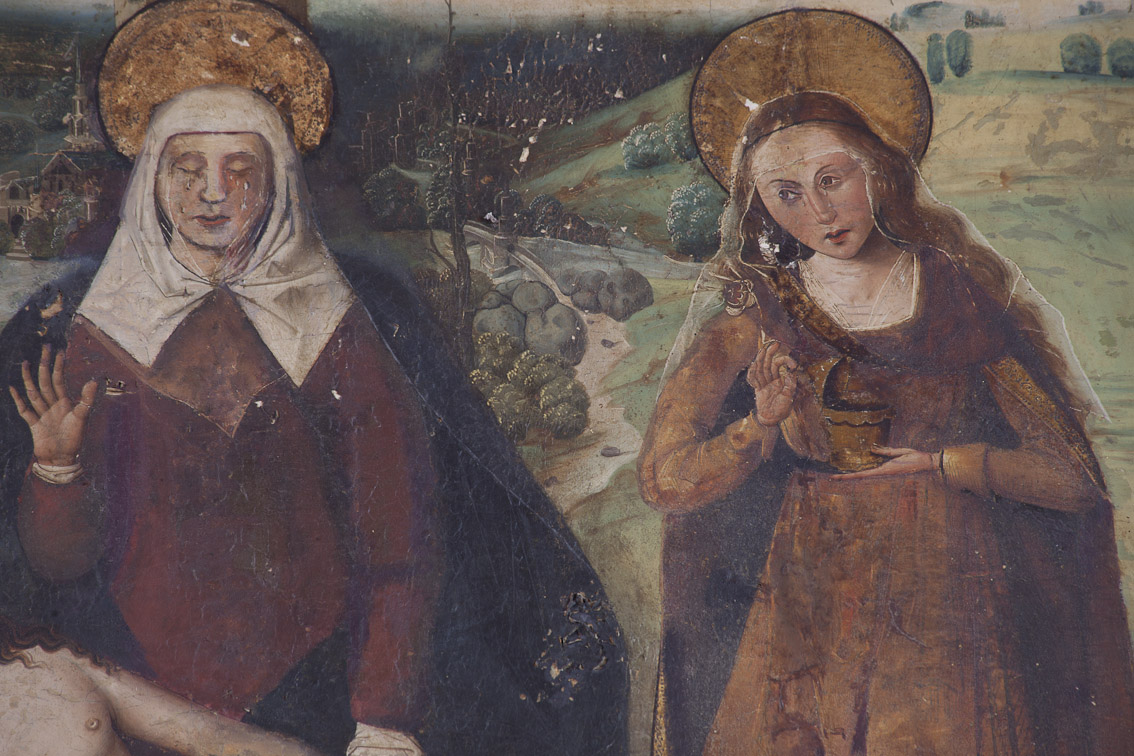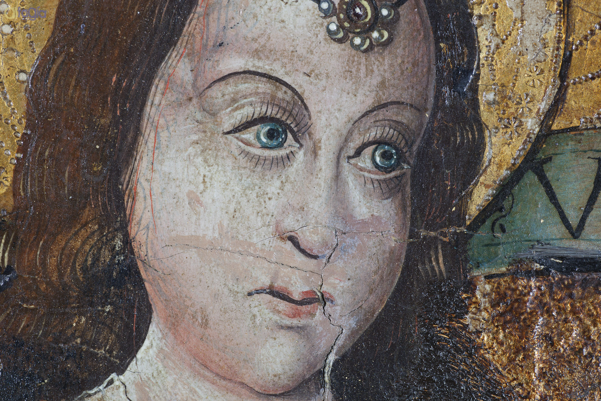 Las siguiente imágenes muestran algunos detalles de las pinturas antes de comenzar el tratamiento de conservación de las tablas.