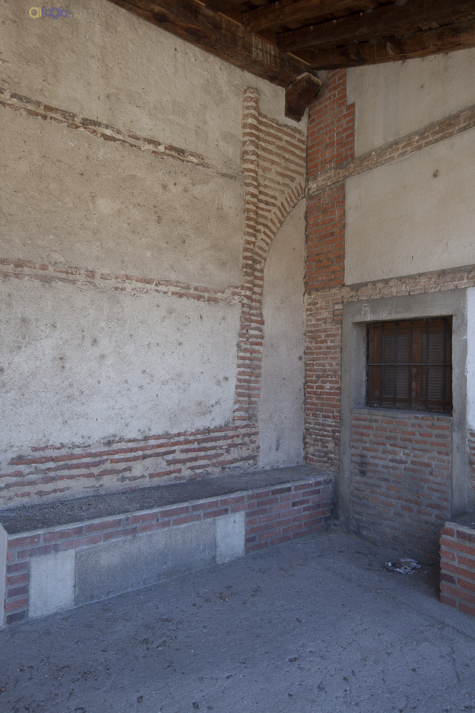 Las imágenes siguientes muestran el conjunto de yeserías junto al retablo y su entorno. Su concordancia en el exterior con un pórtico cegado y parcialmente visible, explica su ubicación en la planta debido a la reutilización de este espacio.
