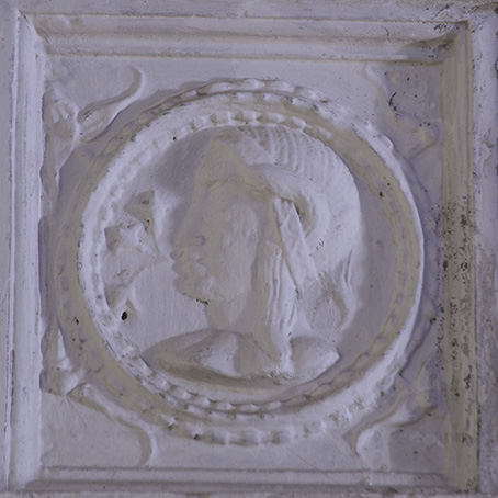 - Una moldura esculpida en piedra de Villamayor que perteneció al enterramiento anteriormente situado en la Capilla de Reyes –Capilla de los Flores-.
