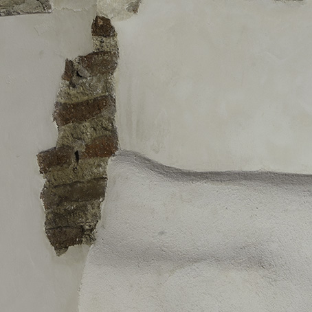 Después continuamos con la realización de catas de investigación en los paramentos del nicho. La intención del muestreo fue determinar la uniformidad de los morteros más antiguos: su extensión, encuentros, y la posible interrupción de los morteros y sus causas. Tratamos de establecer cuál fue la sucesión temporal de los estratos, y asegurarnos de su verificación. Actuamos de manera crítica sobre nuestras conclusiones intentando descubrir si era posible ajustar periodos de tiempo intermedios en donde existieran terminaciones hoy desaparecidas. Sin embargo, hemos comprobado la continuidad de los vestigios en todas las partes analizadas.