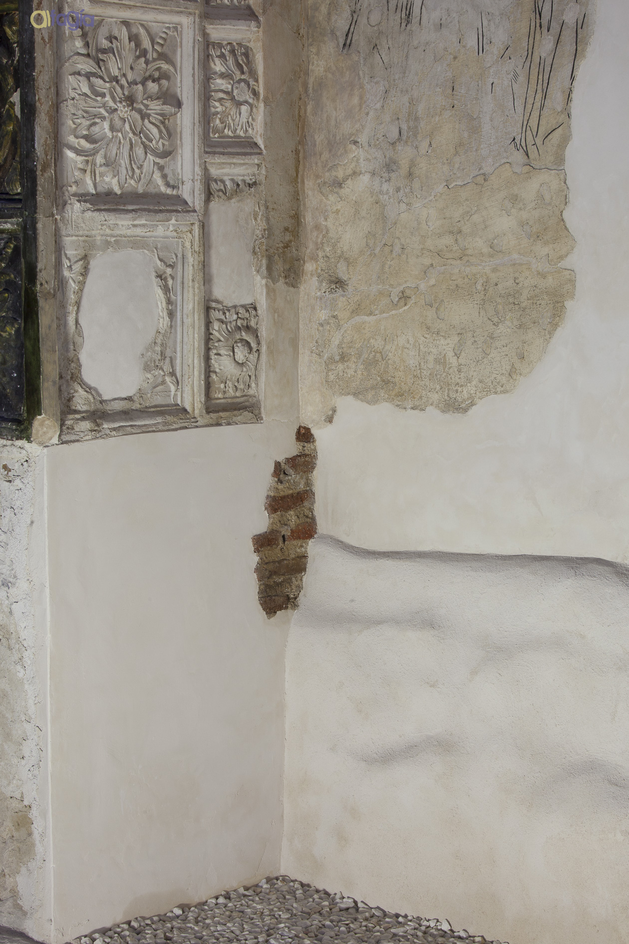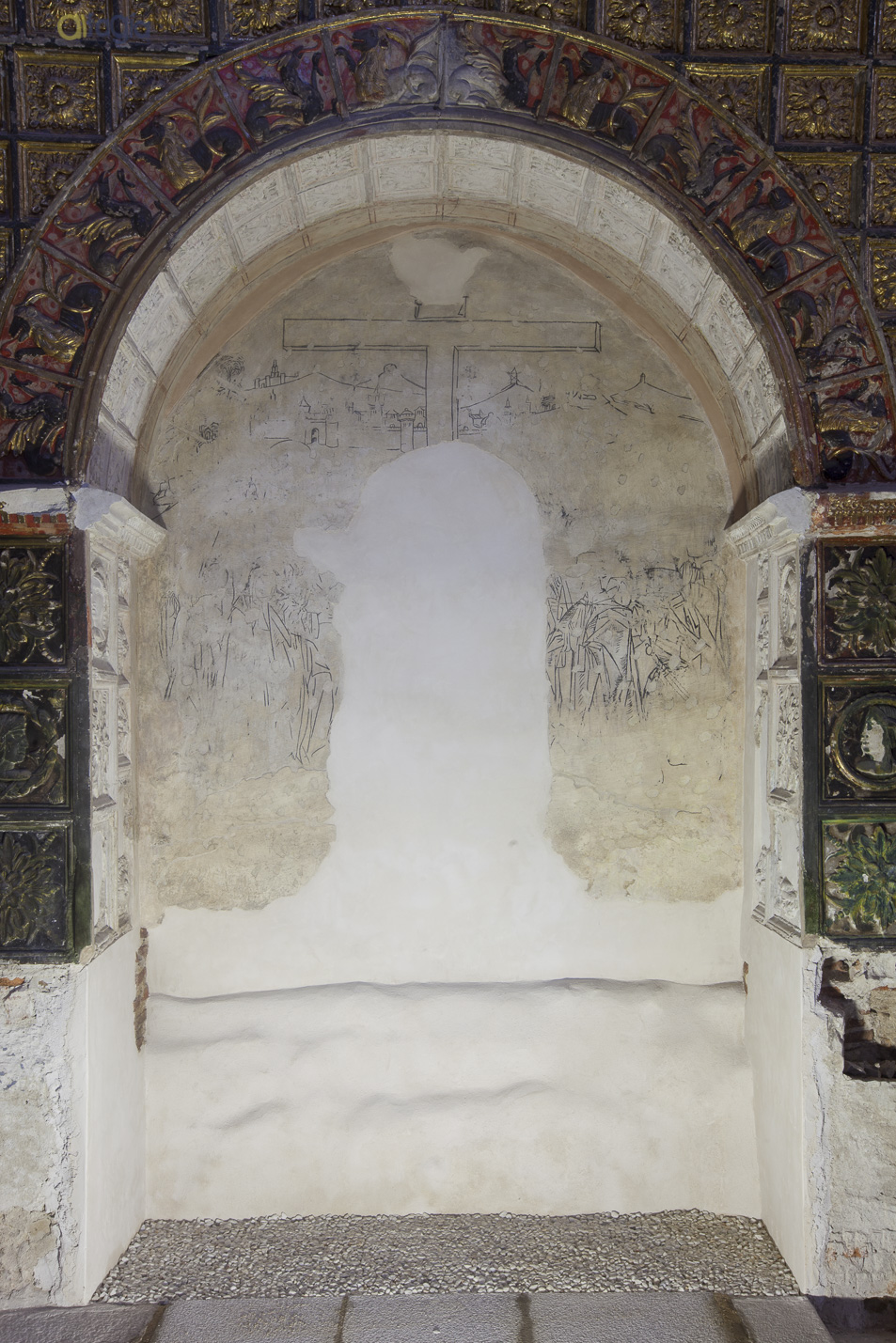 Se ha valorado la calidad de la doble superposición de decoraciones barrocas, y el hecho de recuperar una zona que devuelve al monumento el sentido primitivo. En cuanto la hornacina, siendo la cavidad un elemento distorsionador del plano pictórico inicial, fue conveniente rellenar su volumen.