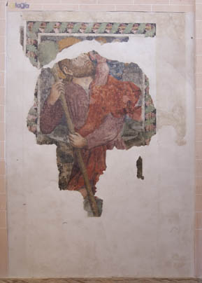 La pintura de San Cristobal data de 1466. Esta ejecutada affresco, con retoques realizados mediante un temple graso; por lo que, para ser precisos, estamos ante un mezzo fresco.