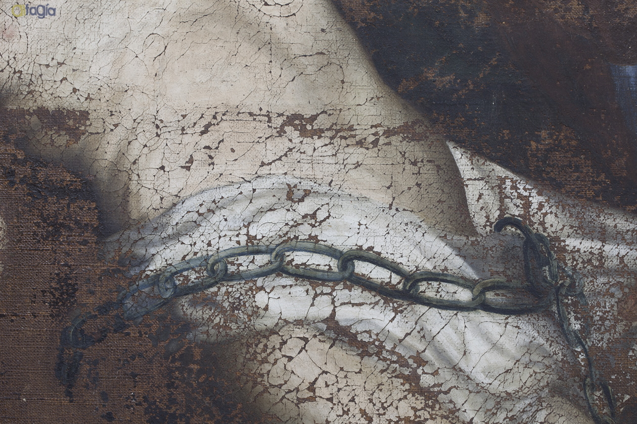 Durante el proceso de restauración, tras la limpieza de la capa pictórica empezamos a observar algunos paralelismos en la posición de los verdugos con algunas referencias visuales cercanas. La temática del martirio de san Lorenzo nos hacía mirar forzosamente el lienzo que sobre este tema conserva el monasterio del Escorial de mano de Tiziano Vecellio di Gregorio (c.1490-1576). El pintor veneciano realizó dos cuadros sobre este violento episodio. La primera versión es de 1558 y se conserva en Venecia, en la capilla de san Lorenzo de la iglesia de Santa María Assunta; una década después pintó el lienzo expuesto en la Iglesia Vieja del monasterio del Escorial. La importancia de las obras de Tiziano favoreció su rápida difusión y el grabador holandés Cornelis Cort (c.1533-c. 1578), realizó en 1571 la plancha del Martirio de san Lorenzo, y cuyo buril resume los elementos principales de ambos lienzos de Tiziano.
