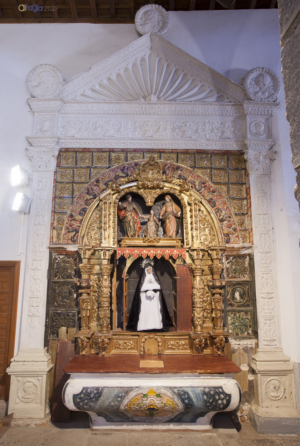 Por tanto, todas estas transformaciones podemos observarlas directamente sin que los avatares de estos últimos siglos añadan nuevas huellas a la superficie del muro debido a la protección que ha supuesto el retablo.