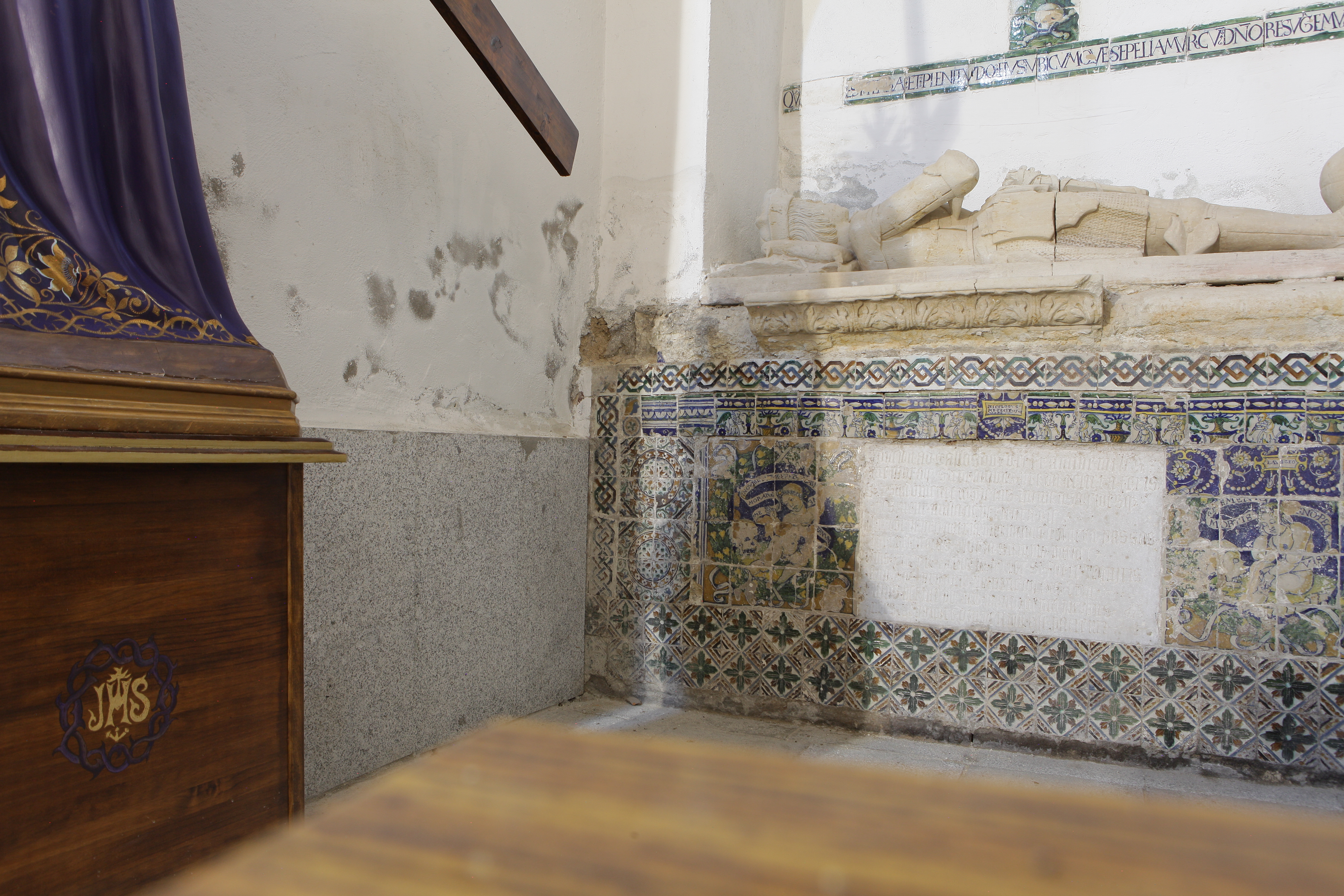Durante más de doscientos setenta años el nicho que forma el monumento ha permanecido oculto por el retablo de Ntra. Señora de la Soledad. Es aquí donde hemos localizado vestigios desde el momento de la colocación del retablo retrocediendo en el tiempo hasta la propia génesis del monumento. A mediados del siglo XVIII, sin embargo, la pérdida de su función funeraria o su desmantelamiento ya hacía mucho que había sido perpetrada e introducir el retablo en 1749[7] supuso un último acomodo hacia esa función sacramental que tenía años atrás.