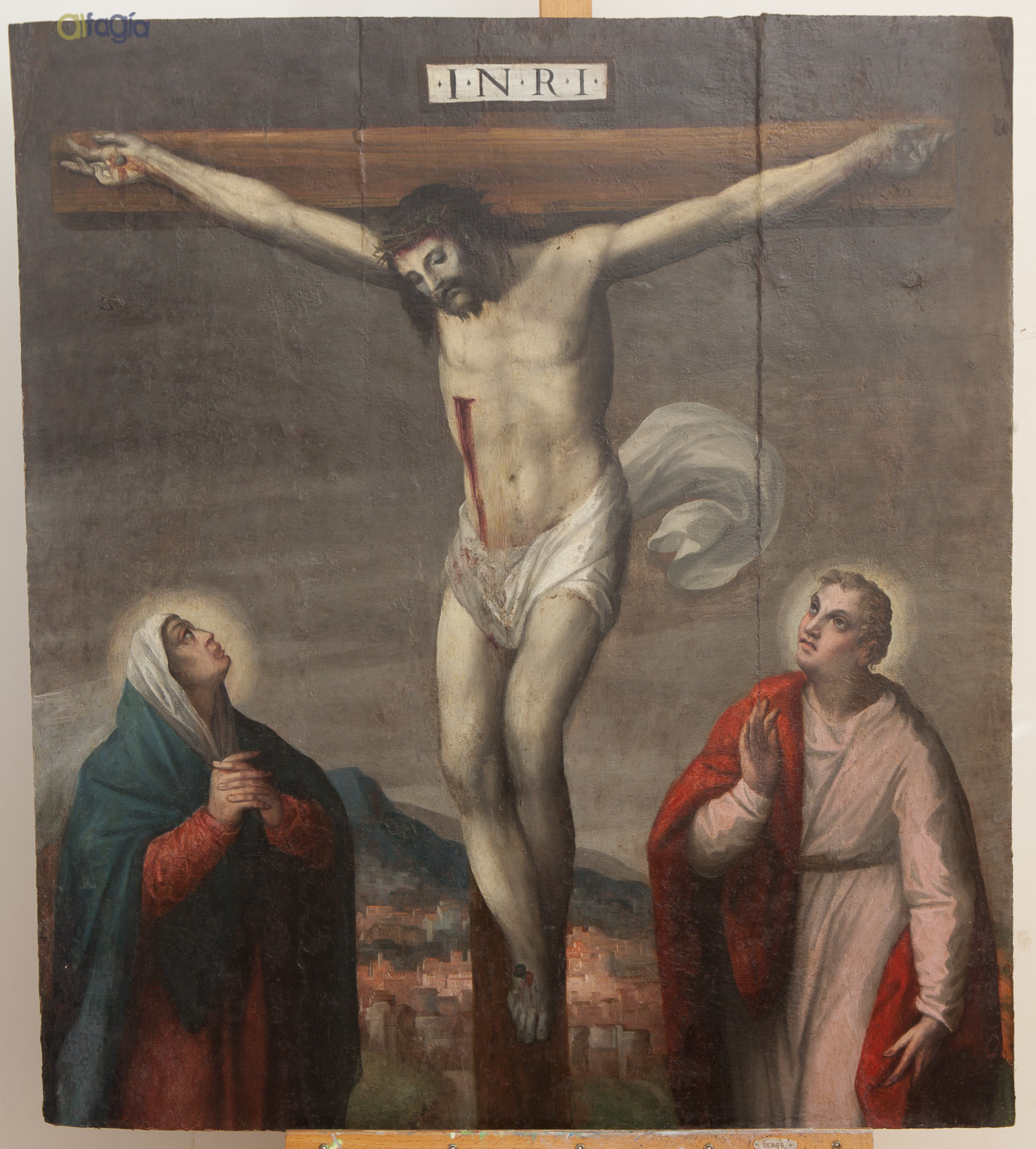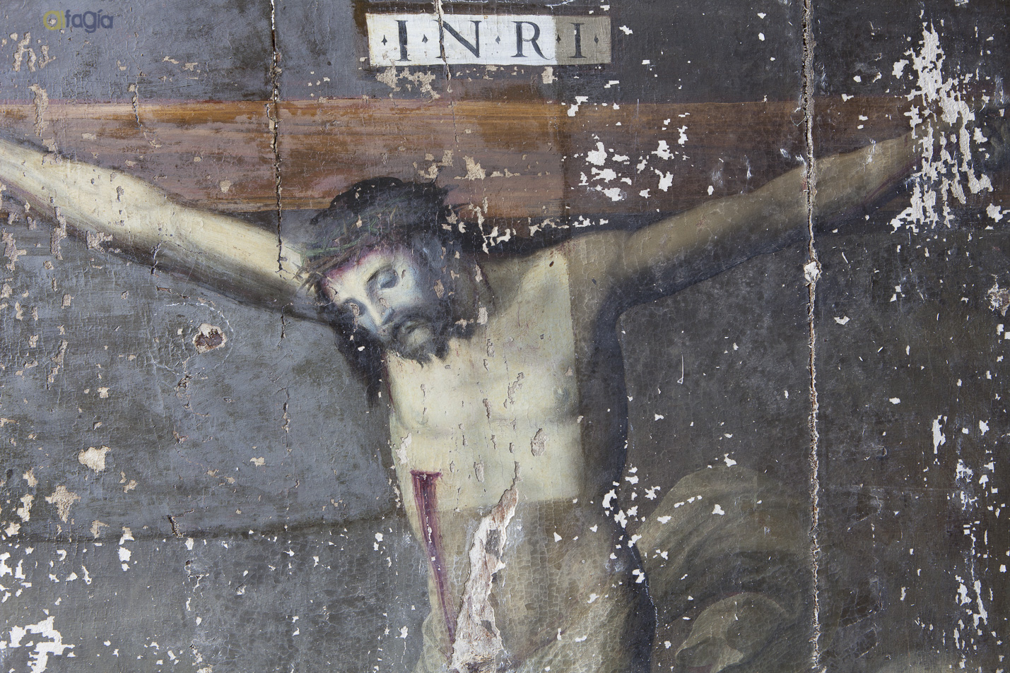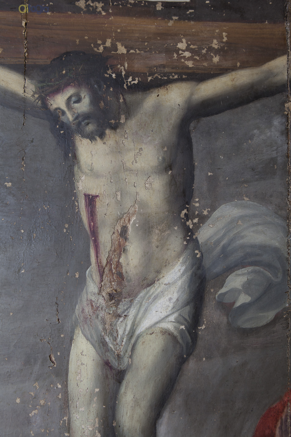Para finalizar, fotografías general y de detalles de la pintura sobre tabla de El Calvario una vez restaurada.