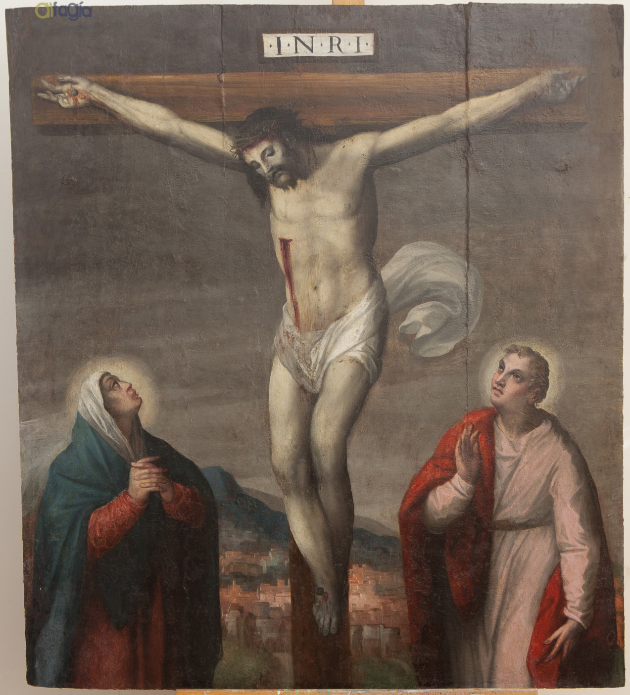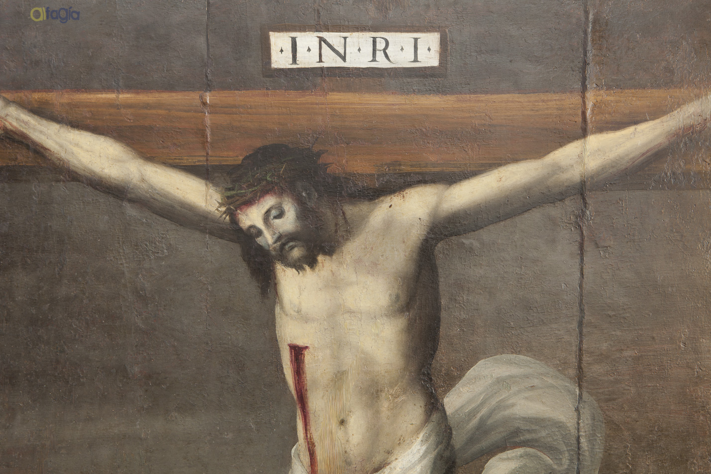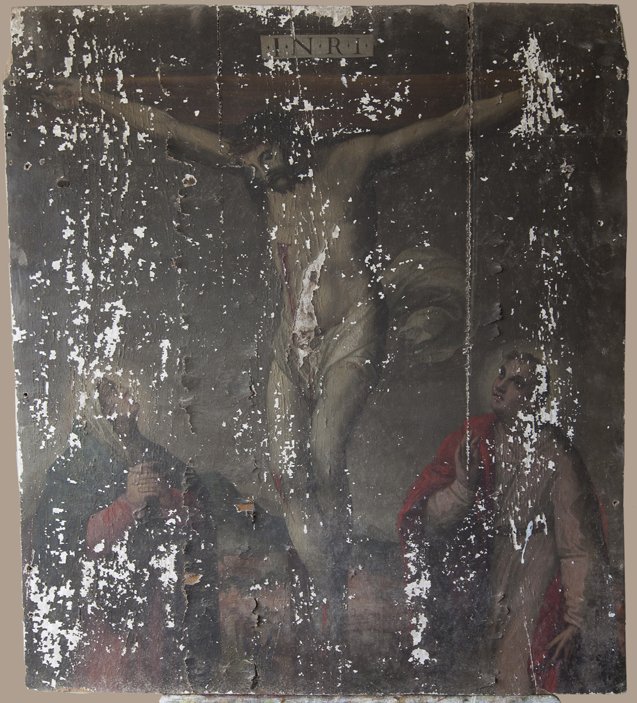 Para finalizar, fotografías general y de detalles de la pintura sobre tabla de El Calvario una vez restaurada.