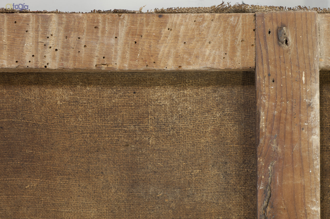 Esta semana hemos comenzado el tratamiento del marco, desde la conservación hasta la limpieza del dorado, y se limpió e impermeabilizó el lienzo central preparándolo para su conservación.