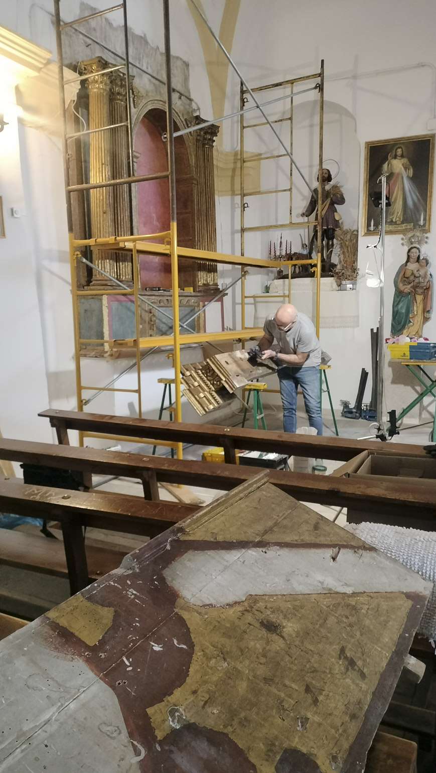 Desde el miercoles hemos comenzado a intervenir en el resto del entallado del retablo.
