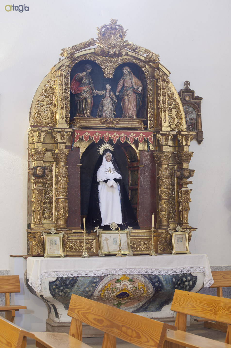 En este caso, sirve de marco a una imagen ampliamente venerada en la época: La Virgen de la Soledad.